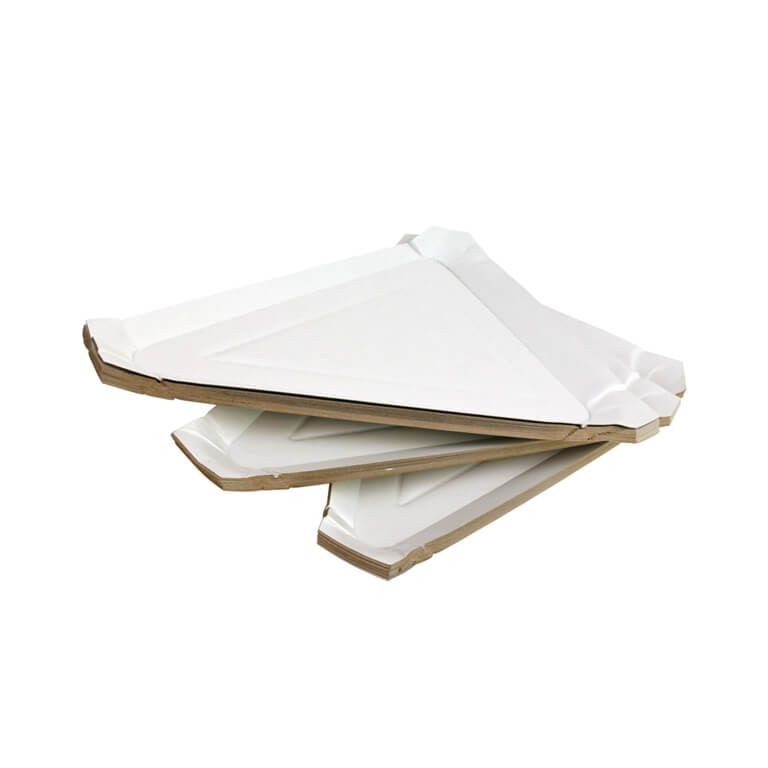 Tavitele sunt confectionate din carton duplex presat, 300 g/mp, ambalate la set 100 bucati. Culoare alba, forma triunghiulara. La cerere, se poate livra si paletizat.